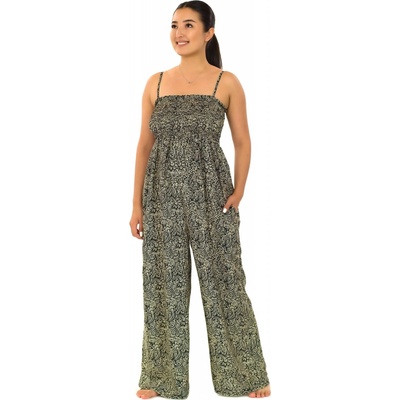 Kalhotový overal Shanti - černá s béžovou Tento parádní kalhotový overal na ramínka je nejen originální, ale také velmi pohodlný. Široké žabičkování ve vrchní části vytvoří...