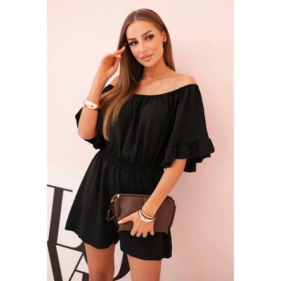Tento dámský overal typu hiszpanka je efektní a ženský návrh ideální na letní dny. Odkryté ramena krásně zvýrazňují siluetu, a volánky na rukávech dodávají celku lehkost a módní...