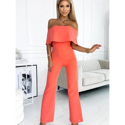Broskvový overal s volánky a střihem mimo ramena. Vrchní díl je ušitý v korzetovém stylu - na velrybích kosticích. Zapíná se na skrytý zip na zádech. Značka Bergamo. LIMITOVANÁ...
