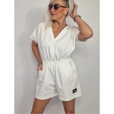 Dokonalý bavlněný overal s gumou v pase, výstřihem do V, zapínáním na patenty a krátkým rukávem. Lehce pružný ONE SIZE, sedí na XS-L( šířka přes prsa 60 cm, šířka v pase...