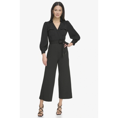 Dámský overal s dlouhými nohavicemi rovného střihu. Jednobarevný design s límečkem, zavinovacím výstřihem do V a našitými kapsami na hrudi doplňuje přestřižený pas s tonální...