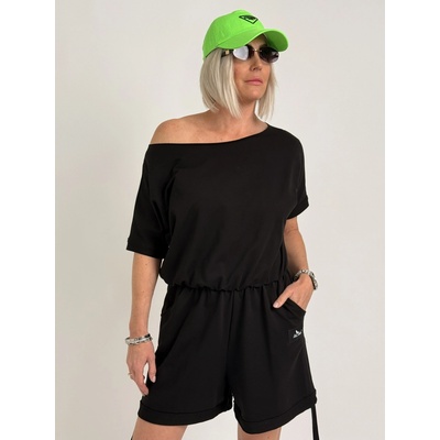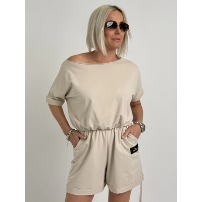Dámský overal s kulatým výstřihem a tříčtvrtečním rukávem. Zapínání je v zadní části pomocí stříbrného zipu. Overal je v pase na šňůrku a má dlouhé nohavice s postranními...