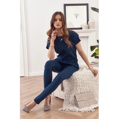 Elegantní a zároveň pohodlný dámský overal tmavě modré barvy. Overal s krátkým rukávem, vázáním v pase a lesklou mašlí na zádech. Vyroben z kvalitní a příjemné látky. Vhodný...