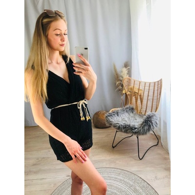 MATERIÁL: 75% viskoza, 20% polyester, 5% elastan VELIKOST: UNI (S,M,L) BARVA: černá Fantazii se meze nekladou! Černý krajkovaný overal s elegantním výstřihem. Overal je...