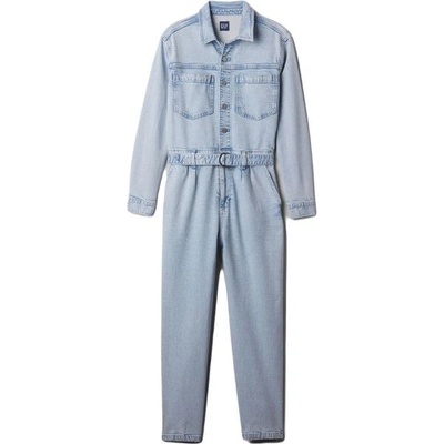 Dámský džínový overal GAP LS DENIM BELTED JUMPSUIT má límeček a zapínání na kovové knoflíčky. Dlouhé rukávy jsou zakončené manžetou. V pase najdete poutka a...