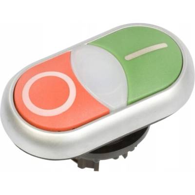 Dvojitý tlačítkový pohon zelený/červený /O-I/ s podsvícením a samonávratem M22-DDL-GR-X1/X0 216700 EATON Ean: 4015082167004 Barva předního kroužku: Chrom Stupeň krytí (IP):...