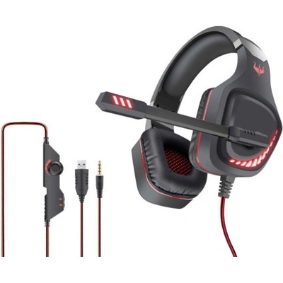 Stylová herní sluchátka s výklopným mikrofonem vhodné k PC, PS4, PS5 nebo mobilnímu telefonu či tabletu. Kvalitní 2m dlouhý kabel je ukončen 4-pólovým konektorem jack3,5mm a USB konektorem pro napájení červeného LED podsvícení sluchátek. Sluchátka mají na kabelu...