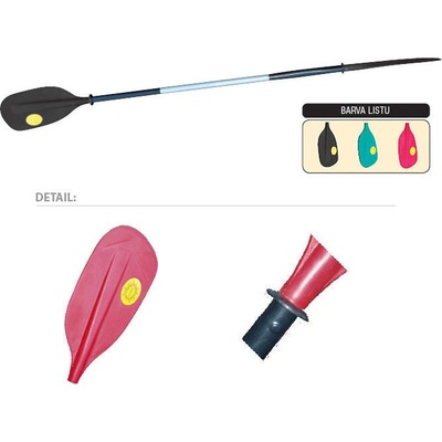 Plastové pádlo s duralovou žerdí. Pádlo lze složit jako jedno kajakářské nebo jako dvě kanoistická pádla. Materiál žerdě: dural (průměr 30 mm) List z odolného plastu: 46 x 19,5...