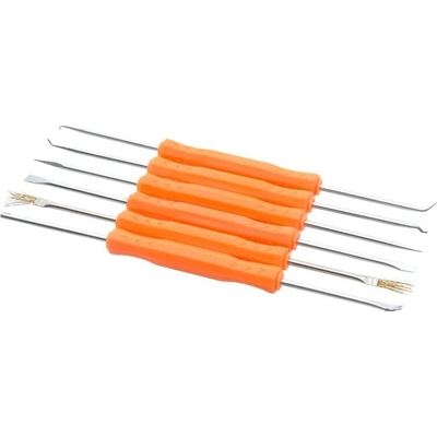 Sada 6 speciálních přípravků s koncovkami různého tvaru na přidržení, úpravu a čištění součástek, např. při pájení BGA obvodů, při montáži a demontáži integrovaných obvodů,...