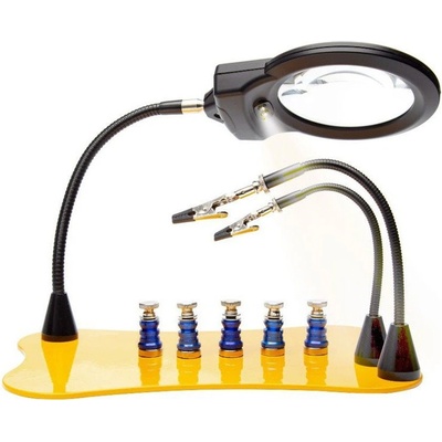 Dvě krokosvorky s pevným stiskem a lupa nastavitelné pomocí dvou kulových kloubů do libovolné polohy. Litinový stojánek zajišťuje dostatečnou stabilitu. Lupa: průměr 46mm,...