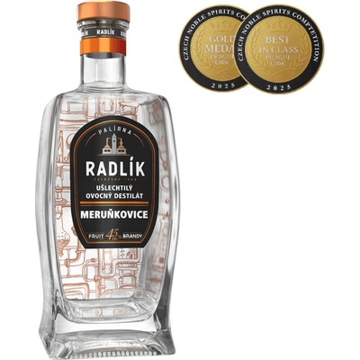 Radlík Meruňkovice 45% 0,5l O produktu: Radlík Meruňkovice je ovocný destilát z vyzrálých meruněk, vyrobený v Palírně Radlík v České republice. Tato zlatá meruňkovice zraje v...