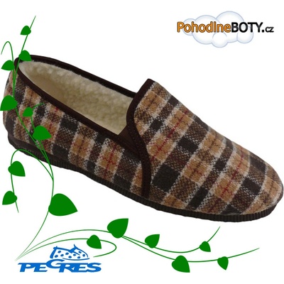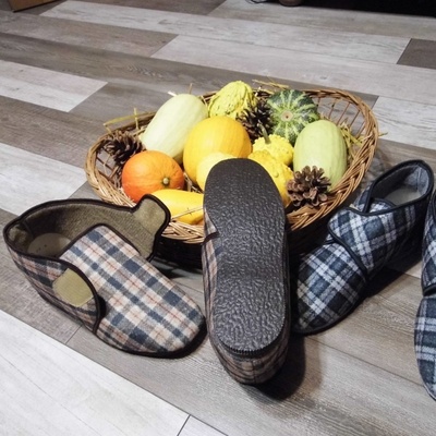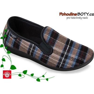 Uzavřené nízké pánské bačkory "mokasíny" s pruženkou v nártu. Barevné provedení v hnědé nebo šedivé kostce. Konkrétní barva v příslušné velikosti , závisí na sezóních výkyvech...