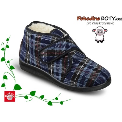 PODROBNÝ POPIS - Popis: domácí obuv s uzavřenou patou a špicí. - Barva: modrá s kostkovaným vzorem - Svršek: textil - Zateplení: ano - Podešev: kvalitní syntetický...