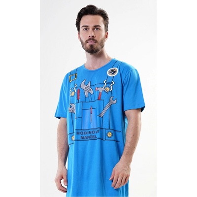 Pánská noční košile s krátkým rukávem Hodinový manžel. Pánská noční košile pro všechny milovníky pohodly s vtipným potiskem imitujícím monterky s nářadím. Použitý materiál je...