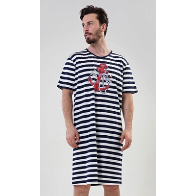 Pánská bavlněná noční košile s krátkým rukávem Kotva. Pánská noční košile pro všechny milovníky pohodlí má na pruhovaném podkladu výrazný obrázek kotvy. Použitý bavlněný...