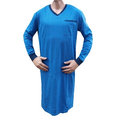 Pánská noční košile s dlouhým rukávem je vyrobena z materiálu 100% bavlna. Noční košile má dlouhý rukáv s náplety a výstřih u krku do V, na pravé straně je kapsička. Noční...
