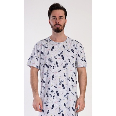 Pánská noční košile s krátkým rukávem Surfing. Jednobarevná pánská noční košile s kulatým výstřihem je zdobena obrázky a nápisy v surfařském stylu. Tato košile je vhodným...