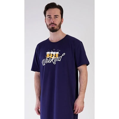 Pánská bavlněná noční košile s krátkým rukávem Beer weekend. Jednobarevná pánská noční košile s kulatým výstřihem a délkou po kolena má na hrudi nápis 'Beer weekend'. Tato...