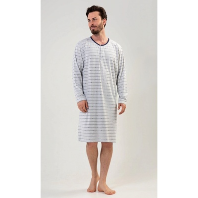 Pánská bavlněná noční košile s dlouhým rukávem Sebastian. Noční košili s kulatým výstřihem a délkou po kolena zdobí jemné proužky. Je vhodným dárkem pro všechny milovníky...