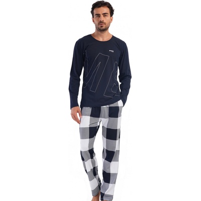 Tmavě modré kostkované pyžamo pro muže ME OPEN 7-24 Pyžamo pro muže z kvalitní bavlny Kalhoty mají v pase všitou plochou gumu, která je zárukou pohodlí. Příjemná velmi...