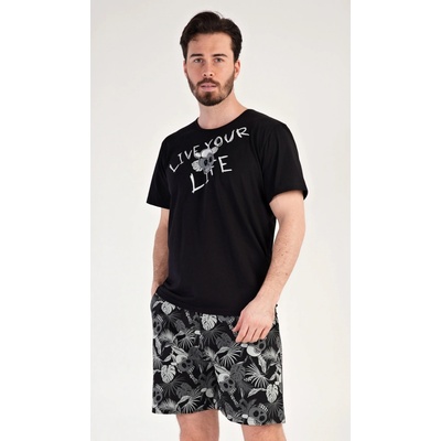 Pánské bavlněné pyžamo šortky Live your life. Pánské pyžamo se skládá z trička s krátkým rukávem a krátkých šortkových kalhot. Na jednobarevném tričku je obrázek lebky a nápis...