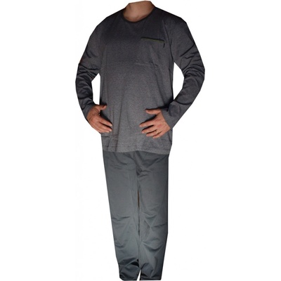 Pánské pyžamo bavlněné je barvy šedé melírované vyrobené z materiálu bavlna 100%. Pyžamový kabátek má v levé horní části kapsičku a rukávy ukončené náplety, Pyžamo je ukončené u...