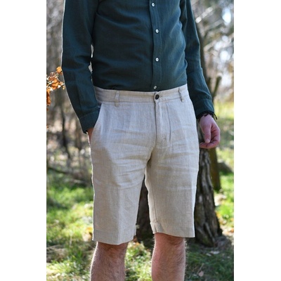 Světlé lněné odlehčené šortky ve střihu Chino ve volnějším rovném střihu. Mají klasické dvě přední a dvě zadní kapsy. Přední kapsy jsou zešikmené. Vyrobeny ze 100 lnu. Česká...