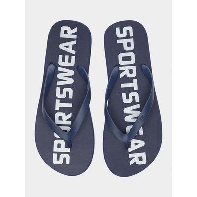 Tmavě modré pánské žabky 4F. VLASTNOSTI: gumové pásky, měkká vložka s potiskem, měkká podrážka zajišťuje lehkost a optimální amortizaci. Hlavní materiál: Pvc-polyvinylchlorid...