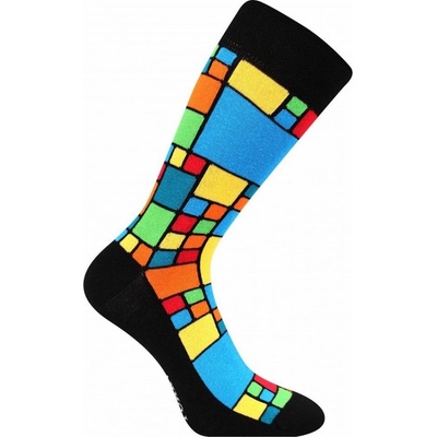Pánské ,,trendy" módní moderní vzorované ponožky z česané bavlny barevné čtverečky a obdélníky. Složení:80% bavlna, 15% polyamid, 5% elastan