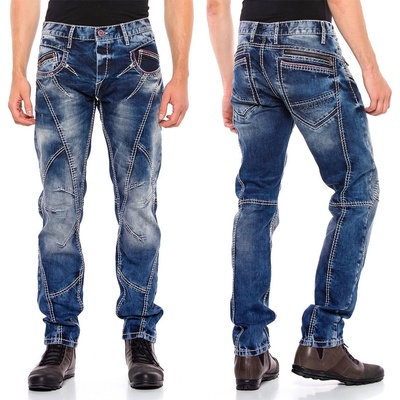 Džíny CIPO & BAXX CD563 mají 5 kapes a jsou prošívané zvýrazněnými hrubými švy. Střih je regular fit. Na zadní straně jsou dva ozdobné zipy. Zapínaní je na knoflíky. materiál:...
