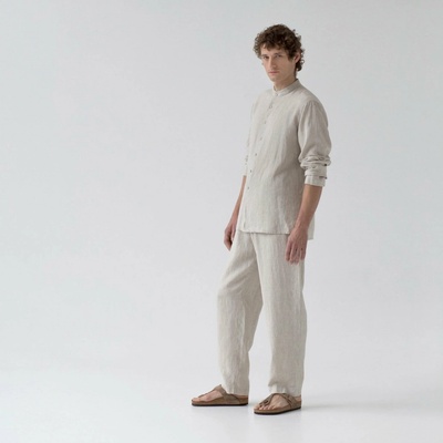 Currant Melange – lněný komplet na spaní i domácí pohodu s dlouhým rukávem, volný střih, OEKO-TEX len, kapsy, ruční výroba. Stylový dárek z Litvy.