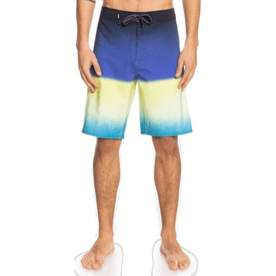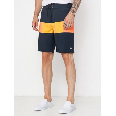 stylové modré koupací šortky velikosti XXL s logem Quiksilver z kombinace rychleschnoucího polyesteru a elastanu se dvě bočními síťovanými kapsami, zadní kapsou na zip a...