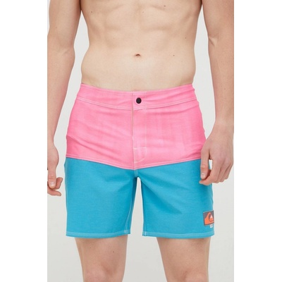Model butt logo od značky Quiksilver. Kolekce 2022. Barva růžová + modrá. Materiál: 66% polyester, 20% bavlna, 8% konopí, 6% elastan.