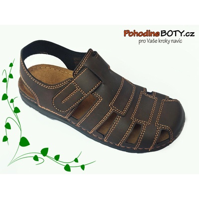 Praktické pánské sandále s lehkou podešví. Skladem až do vel. 49. Širší střih a příjemná kožená stélka pro ideální klima i pro letní dny.