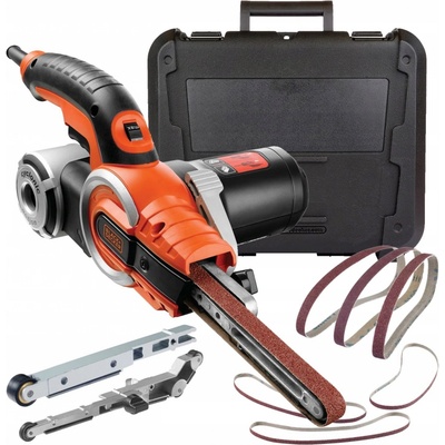 Funkce odsávání se záchytnou nádobou na prach | aretační spínač pro trvalý provoz | pro běžné brusné pásy 75 x 533 mm | volnoběžná rychlost pásu 240–400 min-1 | jmenovitý příkon 90