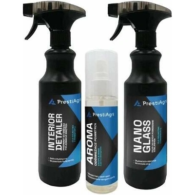PrestiAgri Čištění a péče o interiér Plastic Cleaner 500 ml, Interior Detailer 500 ml, Fabric Cleaner 500 ml, Nano Glass 500 ml, Black Dressing 500 ml, Aroma Zlaté dny 120 ml