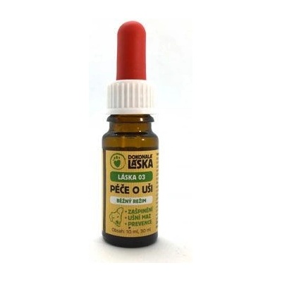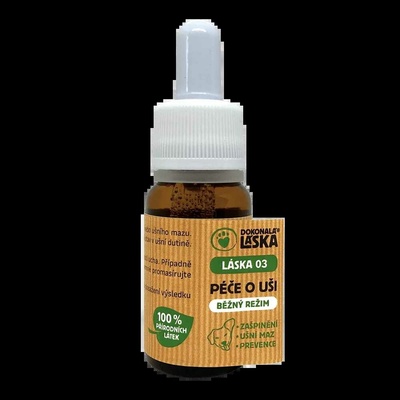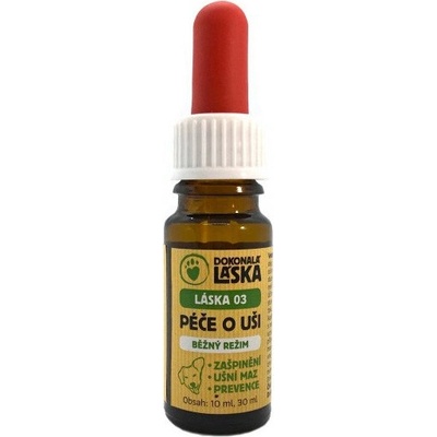 Láska 04 Péče o uši intenzivní péče – přírodní olejová směs pro psy (30 ml) Rychlá fakta: - Typ přípravku: Přírodní olejová směs pro psy - Objem: 30 ml - Hlavní...