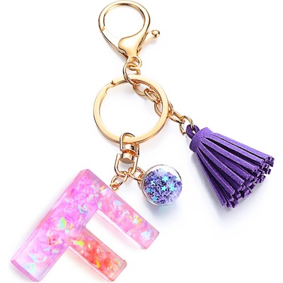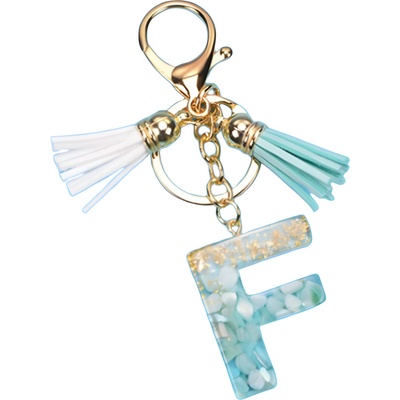 Přívěsek na kabelku a nebo klíče ve tvaru písmene. Přívěsek je na pozlaceném řetízku s karabinkou, kroužkem na klíče a 2 střapečky.