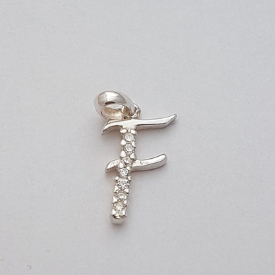 Stříbrný přívěsek písmeno F velké. Rozměr přívěsku: 1.2 cm x 1.6 cm ( s očkem 2.3 cm ). Hmotnost přívěsku: 0.9 g