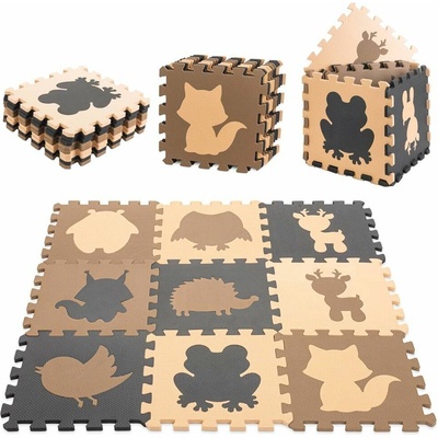 Pěnové puzzle s potiskem cestiček a zvířecího safari pro děti od 3 let. Balení obsahuje 9 čtvercových dílů a 12 okrajových dílků. Bezpečná a měkká podložka je omyvatelná, tlumí...