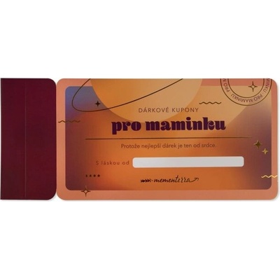 Knížečka obsahuje 15 dárkových kuponů pro vaši maminku. Obdarovaná si sama vybírá, kdy zvolené přání uplatní. Vybraný kupon jednoduše vytrhne a předá dárci, který ho realizuje. Zlaté kupony mají neomezenou platnost. Knížka dárkových kuponů pro maminku obsahuje: 13...