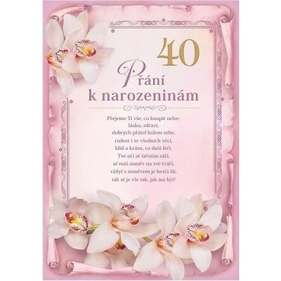 Přání k 40. narozeninám - listina A4.* s textem uvnitř přání* součástí balení je i barevně sladěná obálka* originální technologie zpracování přáníčka od společnosti ARGUS - "Na...