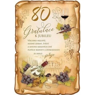 Přání k 80. narozeninám - listina. S textem uvnitř přání. Součástí balení je i barevně sladěná obálka. Originální technologie zpracování přáníčka od společnosti ARGUS - "Na...