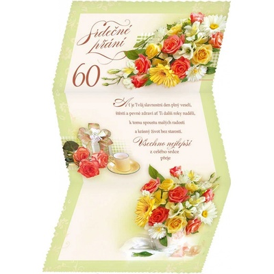 Přání pro ženu k 60. narozeninám - listina. S textem uvnitř přání. Součástí balení je i barevně sladěná obálka. Originální technologie zpracování přáníčka od společnosti ARGUS -...
