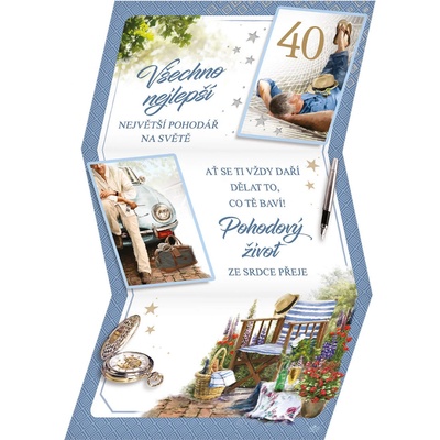 Přání k 40. narozeninám pro muže - skládací listina A4.* součástí balení je i barevně sladěná obálka* po složení je blahopřání v rozměru DL obálky* originální technologie...