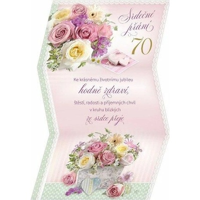 Přání pro ženu k 70. narozeninám - listina. S textem uvnitř přání. Součástí balení je i barevně sladěná obálka. Originální technologie zpracování přáníčka od společnosti ARGUS -...