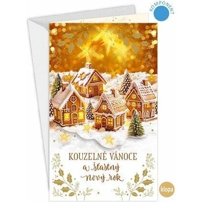 Vánoční přání s kapsou na peníze a lepeným komponentem domečků vystupujících do prostoru.* text uvnitř blahopřání* součástí balení vánočního pozdravu je také barevně sladěná...