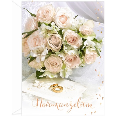 Svatební blahopřání s textem uvnitř: "Milí novomanželé, ze srdce Vám přejeme krásný společný život plný lásky, štěstí a vzajemného porozumění. Hodně štěstí" * 3D efekt umocňuje...
