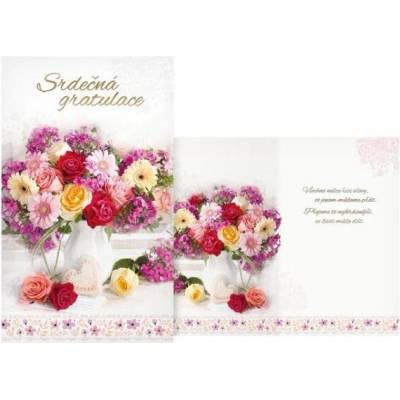 Přání srdečné. Přání k narozeninám, svátku nebo jiné příležitosti. Uděláte tím určitě velkou radost. Text na přední straně: Srdečná gratulace Text uvnitř přání: Všechno nelze...