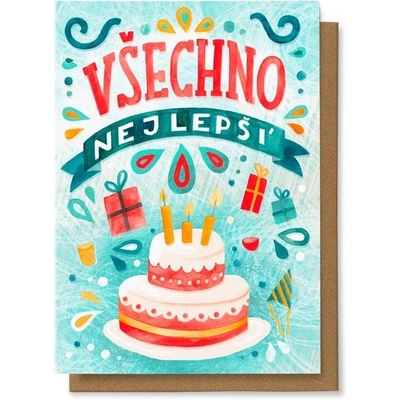 Text na přední straně přání: Krásné narozeniny Text uvnitř přání: Všechno nejlepší, štěstí, zdraví a splněná přání přeje Papír: pohlednicový karton 240 g Přání je baleno...